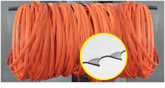 本公司專業(yè)生產各類帶鋸條,合金帶鋸條,刀帶,公司擁有雄厚的技術力量,各類的加工設備,現代化的檢測設施及熱處理,焊接等全套生產裝備。